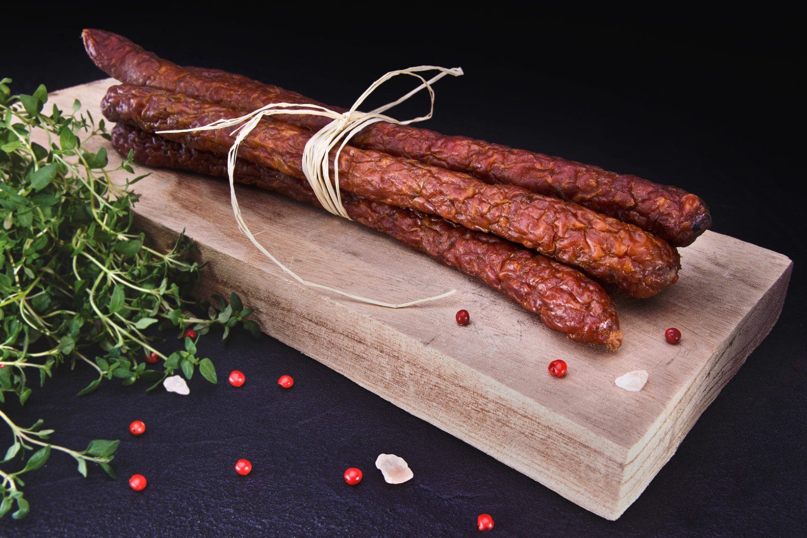 Kabanosy Tradycyjne to klasyka polskich wędlin. Kruche, podsuszone i aromatyczne. Dodatek kminku oraz pieprzu czyni z nich doskonałą przekąskę. Kabanosy nadziewamy w naturalną, baranią osłonkę. Charakteru nadaje jej długie wędzenie i suszenie. To trwała wędlina, która wraz z leżakowaniem nabiera jeszcze lepszego smaku i aromatu!